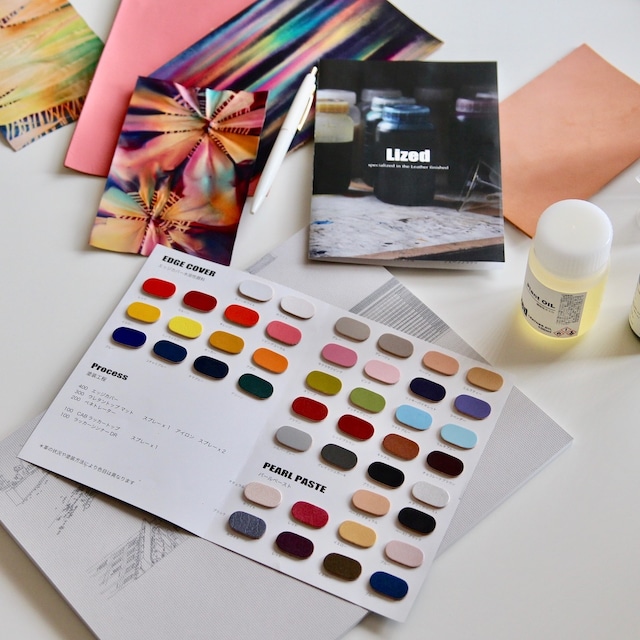 染料、顔料タイプの80色を超える色見本帳です 対象:レンカラー、ダイカラー、エッジカバー各色、メタリックペースト、パールペースト、ルミナスカラー、NCラッカーピグメント *写真はイメージです *サンプルはタンニン鞣しキップ牛革を使用しています Lized製品の相溶性を纏めた相関図、各カラーチップの仕上げ工程の解説した小冊子を同梱します 興味のある方はアメブロも見てください↓↓↓ https://ameblo.jp/lized/entry-12668431896.html